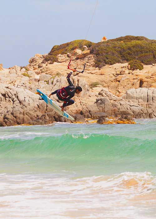 At the Beach Su Giudeu of Chia in Sardinia you will find our school and you can practice kitesurfing and learn this wonderful sport.